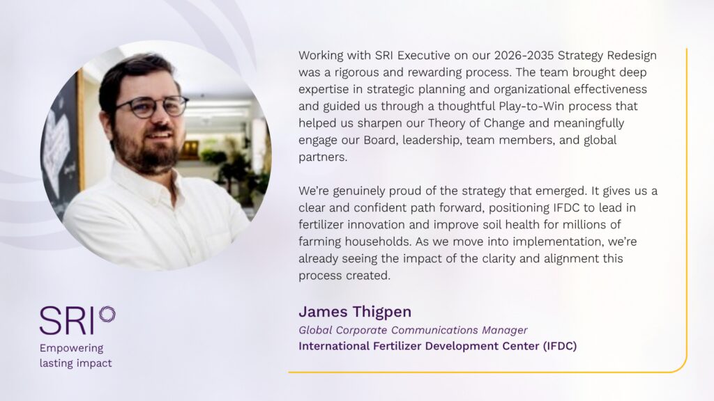 SRI Executive has supported organisations in defining their goals, setting and evaluating strategies, and planning for implementation.
